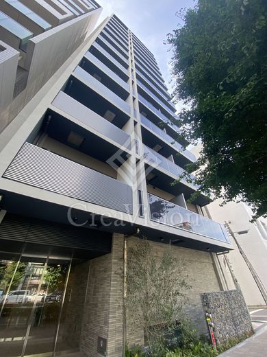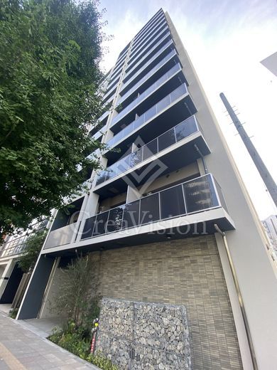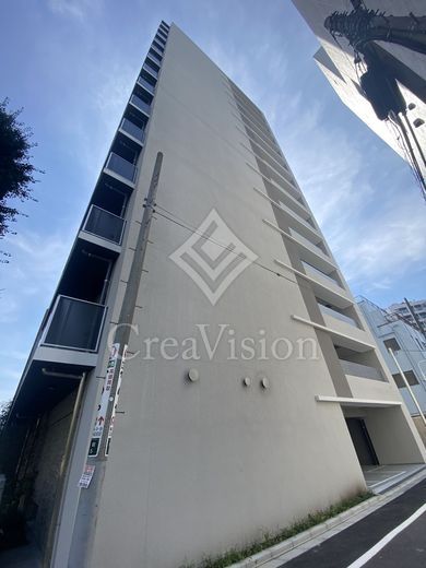 江戸通り沿いに建つ地上14階建て、全49戸の賃貸マンションです。