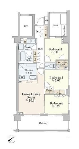 | 間取り | 3LDK+WIC | 専有面積 | 69.04m2 |