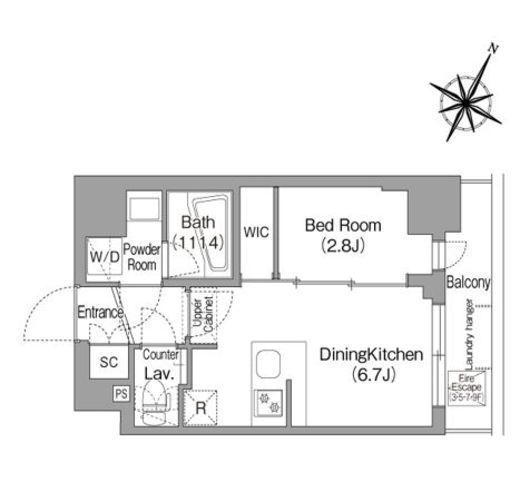 | 間取り | 1DK+WIC | 専有面積 | 25.51m2 |