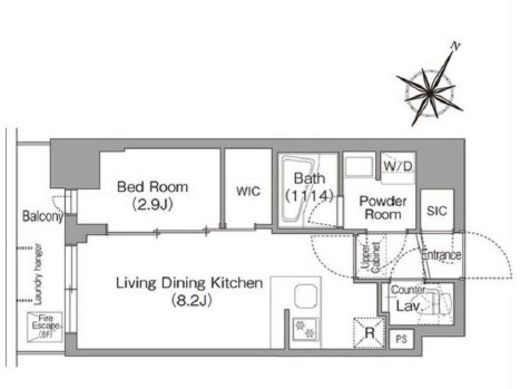 | 間取り | 1LDK+WIC+SIC | 専有面積 | 28.88m2 |