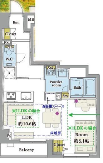 間取り | 1LDK | 専有面積 | 43.23m2 |