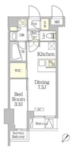 間取り | 1DK+WIC | 専有面積 | 27.48m2 |