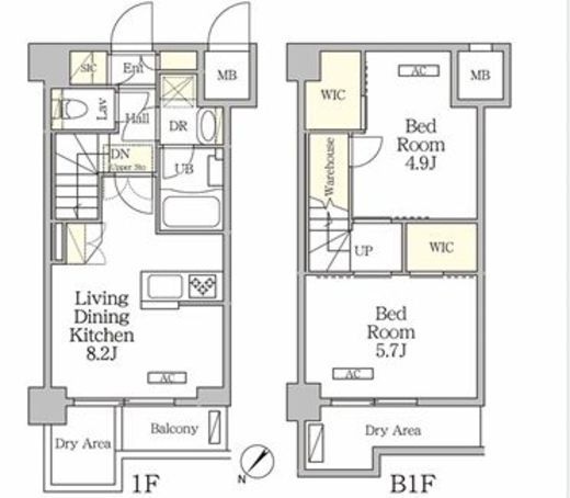間取り | 2DK+WIC | 専有面積 | 50m2 |
