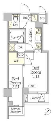 間取り | 2K+WIC | 専有面積 | 26.02m2 |