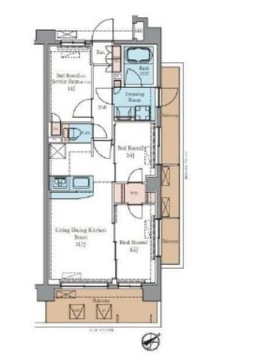 間取り | 2SLDK+WIC | 専有面積 | 54m2 |