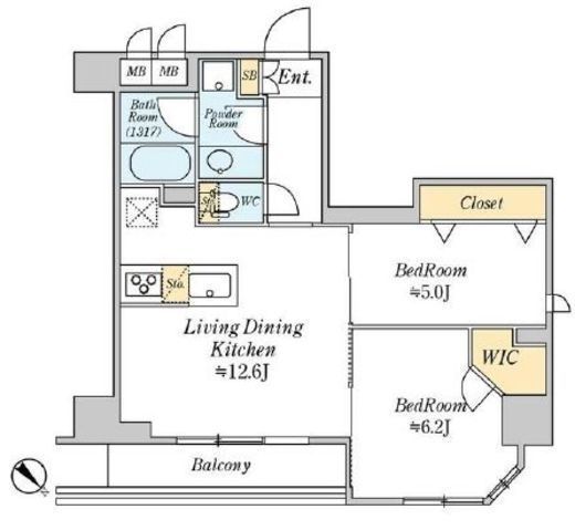 | 間取り | 2LDK+WIC | 専有面積 | 55.9m2 |
