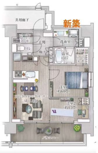間取り | 2LDK | 専有面積 | 54.81m2 |