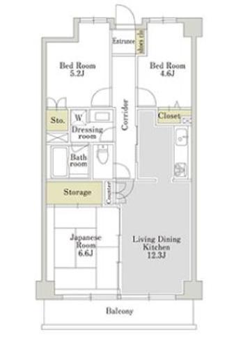 | 間取り | 3LDK | 専有面積 | 66m2 |