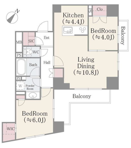 | 間取り | 2LDK+WIC+SIC | 専有面積 | 59.84m2 |