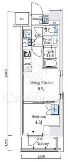 | 間取り | 1DK | 専有面積 | 30.21m2 |