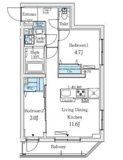 間取り | 2LDK+WIC | 専有面積 | 46.14m2 |
