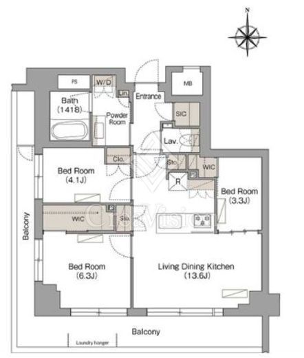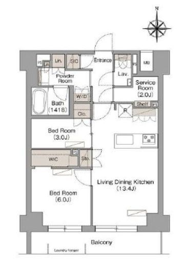 | 間取り | 2SLDK+WIC+SIC | 専有面積 | 57.94m2 |