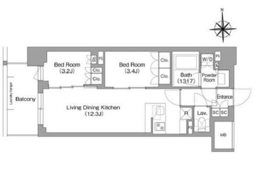 | 間取り | 2LDK | 専有面積 | 45.2m2 |
