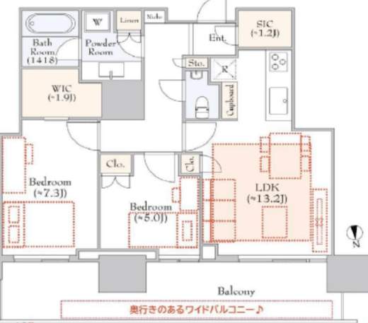 | 間取り | 2LDK | 専有面積 | 66m2 |