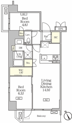 間取り | 2LDK+WIC+SIC | 専有面積 | 61.02m2 |