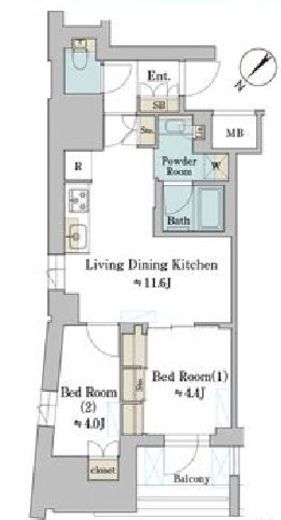 | 間取り | 2LDK | 専有面積 | 49.61m2 |