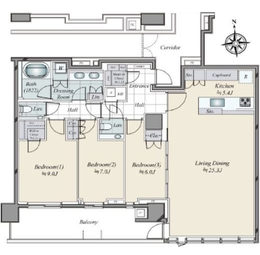 間取り | 3LDK+WIC+SIC | 専有面積 | 119.4m2 |