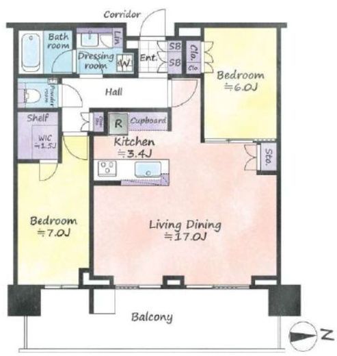 間取り | 2LDK | 専有面積 | 74.12m2 |
