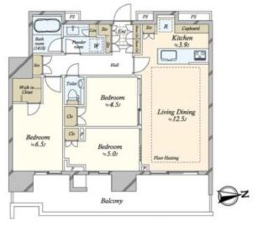 間取り | 3LDK+WIC | 専有面積 | 73.43m2 |