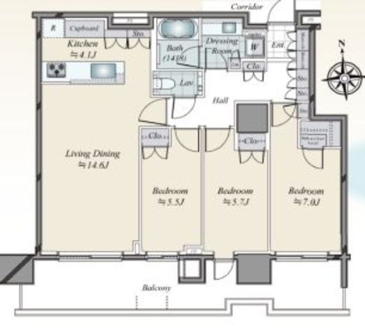 | 間取り | 3LDK | 専有面積 | 82.44m2 |