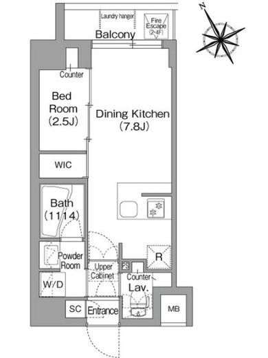 | 間取り | 1DK+WIC | 専有面積 | 26.32m2 |