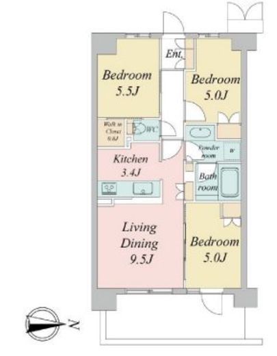 間取り | 3LDK+WIC | 専有面積 | 61.8m2 |