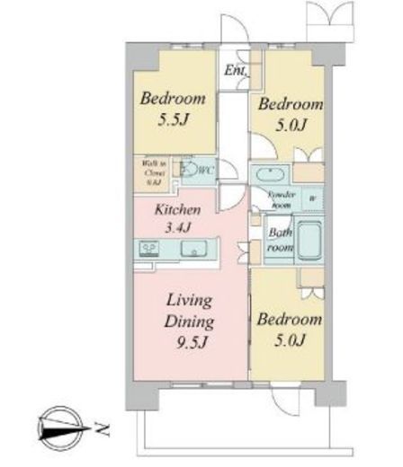 間取り | 3LDK+WIC | 専有面積 | 61.8m2 |
