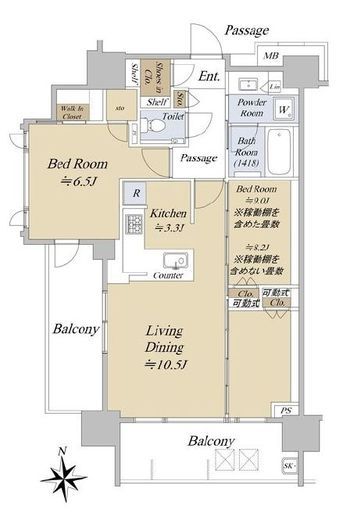 | 間取り | 2LDK+WIC+SIC | 専有面積 | 66.24m2 |