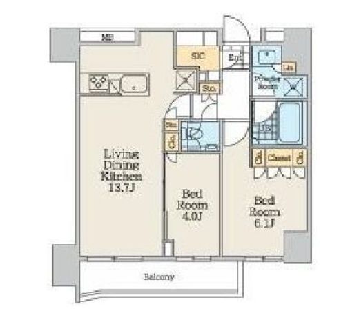 間取り | 2LDK+SIC | 専有面積 | 54.03m2 |