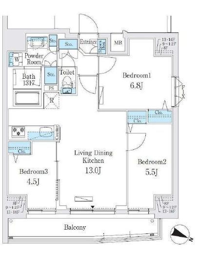 | 間取り | 3LDK | 専有面積 | 63.11m2 |