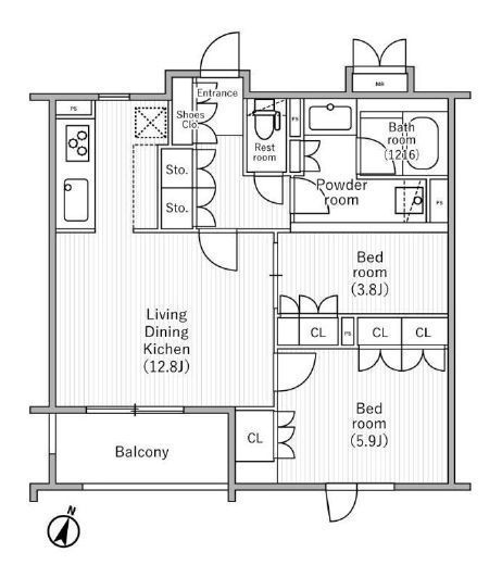 | 間取り | 2LDK | 専有面積 | 56.13m2 |