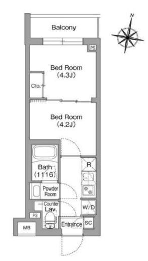 間取り | 2K | 専有面積 | 25.68m2 |