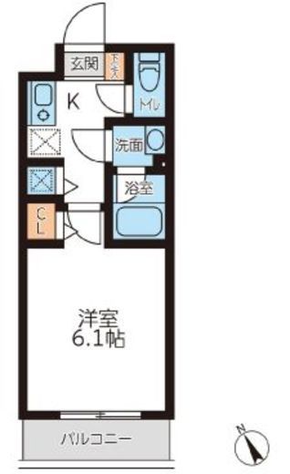 | 間取り | 1K | 専有面積 | 21.16m2 |