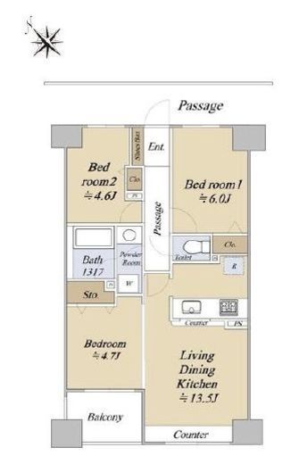 | 間取り | 3LDK | 専有面積 | 61.66m2 |