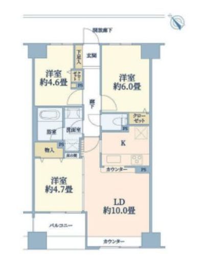 | 間取り | 3LDK | 専有面積 | 61.3m2 |