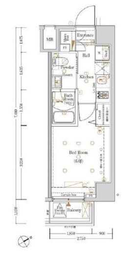 | 間取り | 1K | 専有面積 | 20.57m2 |