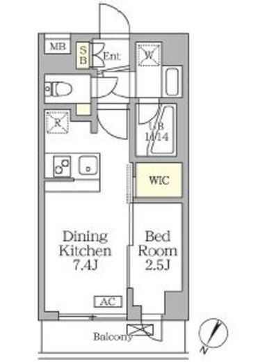 間取り | 1DK+WIC | 専有面積 | 25.69m2 |