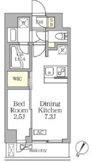 間取り | 1DK+WIC | 専有面積 | 25.46m2 |