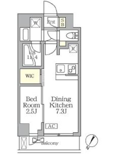 | 間取り | 1DK+WIC | 専有面積 | 25.46m2 |