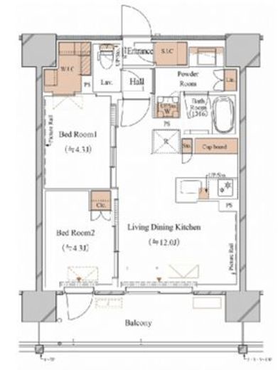 | 間取り | 2LDK+WIC+SIC | 専有面積 | 48.75m2 |