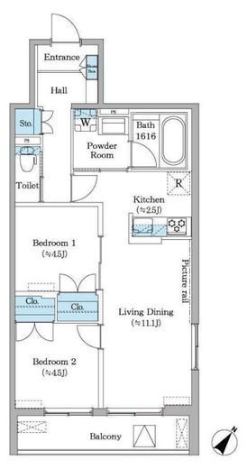 | 間取り | 2LDK | 専有面積 | 56.25m2 |