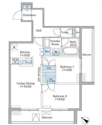 | 間取り | 2LDK+WIC | 専有面積 | 56.69m2 |