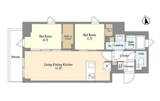 | 間取り | 2LDK+WIC | 専有面積 | 48.72m2 |