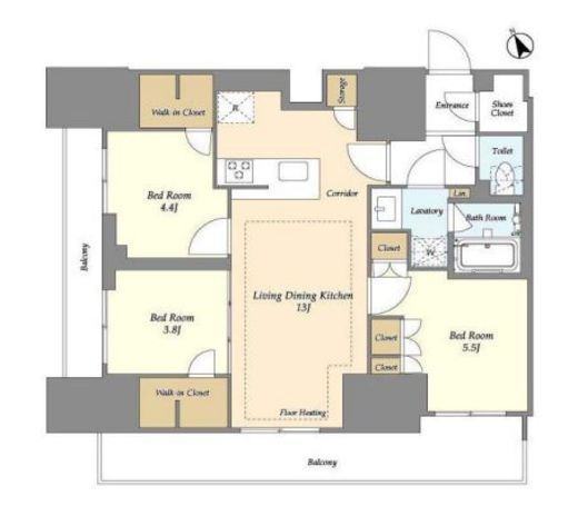 | 間取り | 3LDK+WIC | 専有面積 | 67.38m2 |