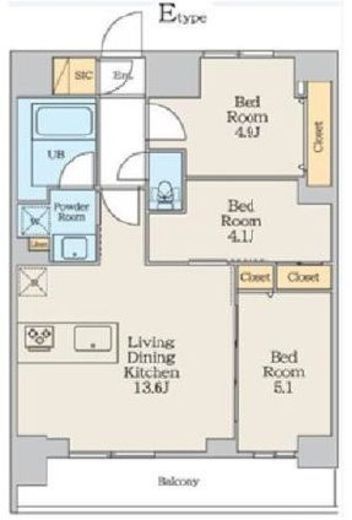 | 間取り | 3LDK+SIC | 専有面積 | 61.66m2 |