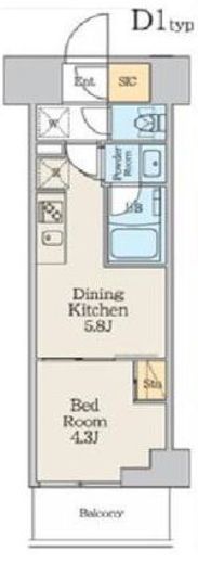 | 間取り | 1DK+SIC | 専有面積 | 25.42m2 |