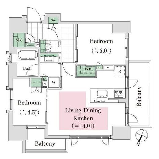 | 間取り | 2LDK+WIC+SIC | 専有面積 | 58.17m2 |