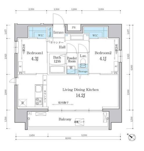間取り | 2LDK+WIC | 専有面積 | 54.54m2 |