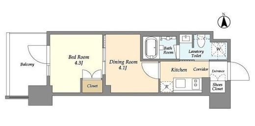 間取り | 1DK | 専有面積 | 25.18m2 |