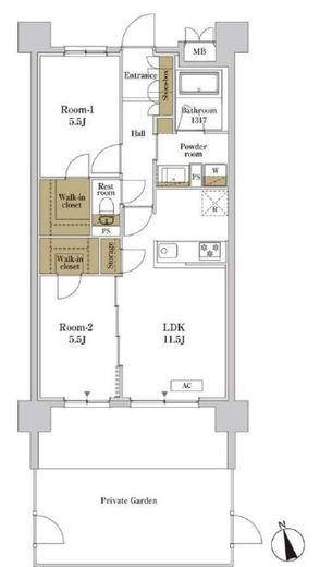 間取り | 2LDK+WIC | 専有面積 | 55.43m2 |